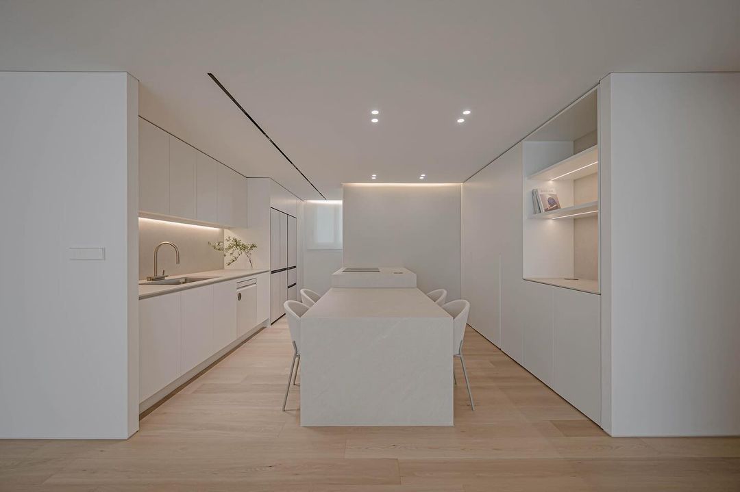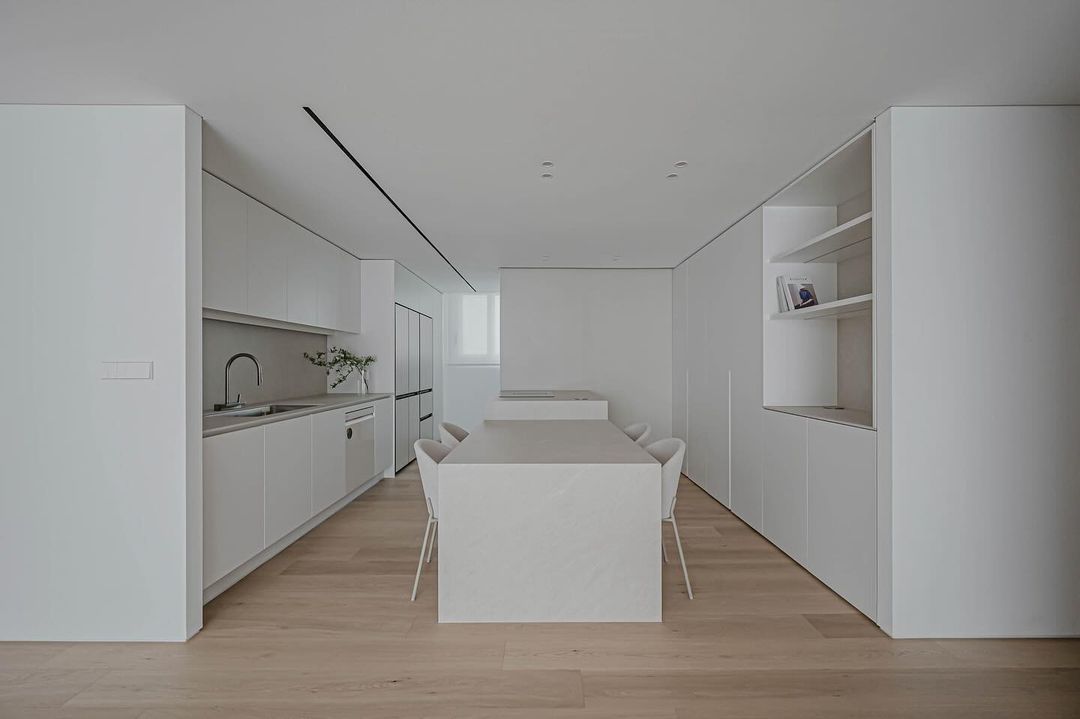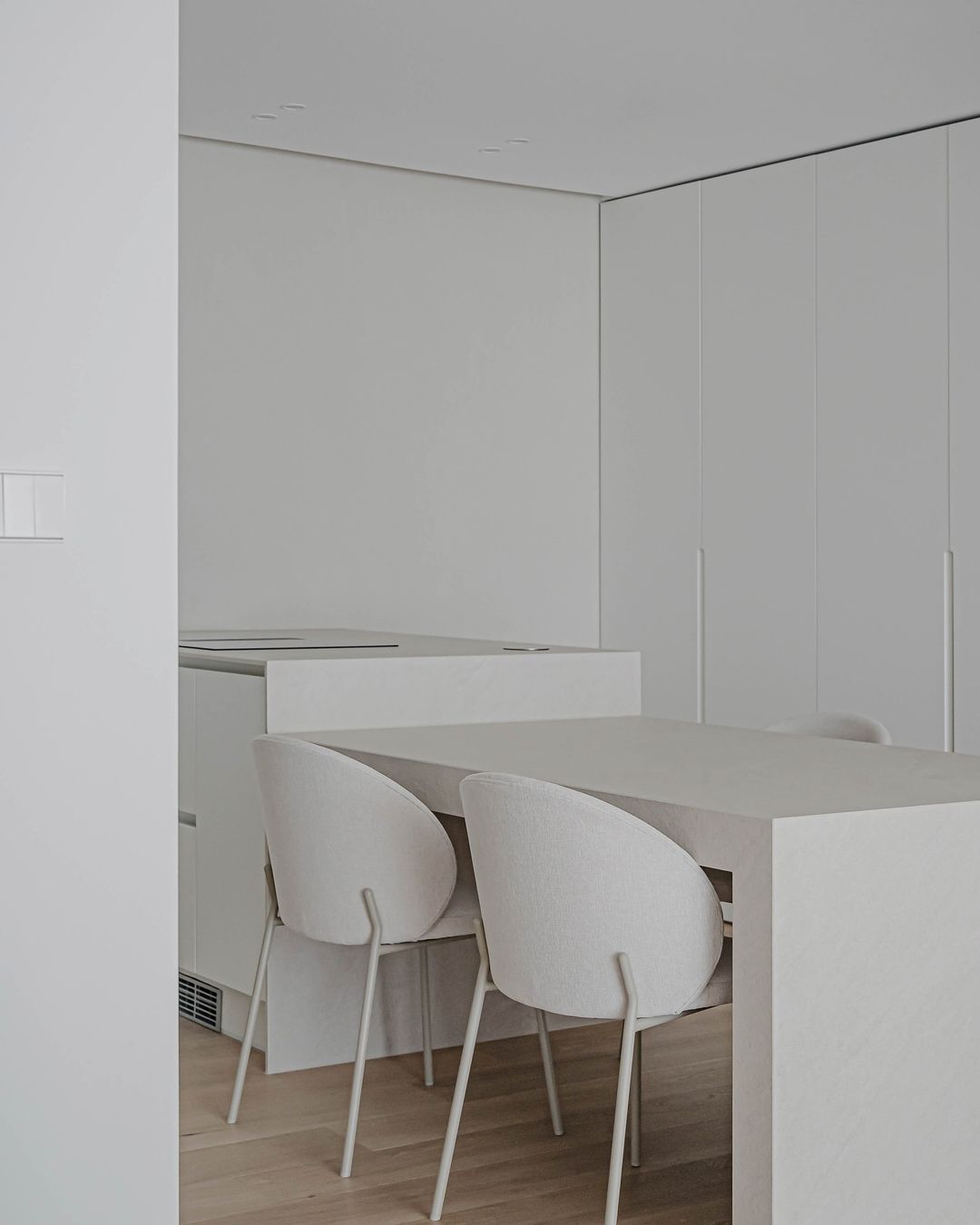 미니멀은 사실 고도로 섬세한 작업입니다. 자칫하면 그냥 밋밋하거나 비어있다는 느낌만 들 수 있으니까요. 그래서 미니멀한 콘셉트의 인테리어에서는 톤을 맞추되, 다양한 자재를 사용해 변주를 시도합니다. 이번 포스팅에서 소개해 드릴 주방 인테리어는 그 사례를 잘 보여줍니다. 화이트-아이보리의 단정한 주방 인테리어입니다.